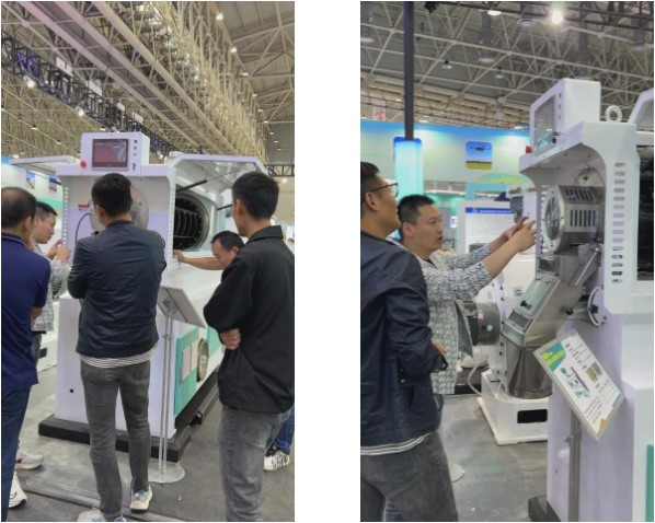 華豫萬(wàn)通此次展出了HRP40智能柔性大米搓光機(jī)、YHT700智能大豆脫皮破瓣機(jī)、HTY智能葵花籽脫殼機(jī)、冰冷式纖維微粉機(jī)等創(chuàng)新產(chǎn)品亮相展會(huì),并圍繞糧機(jī)創(chuàng)新技術(shù)和數(shù)智化工程等新質(zhì)生產(chǎn)力與看展客商探討交流,以技術(shù)實(shí)力促進(jìn)糧食加工企業(yè)轉(zhuǎn)型升級(jí)。