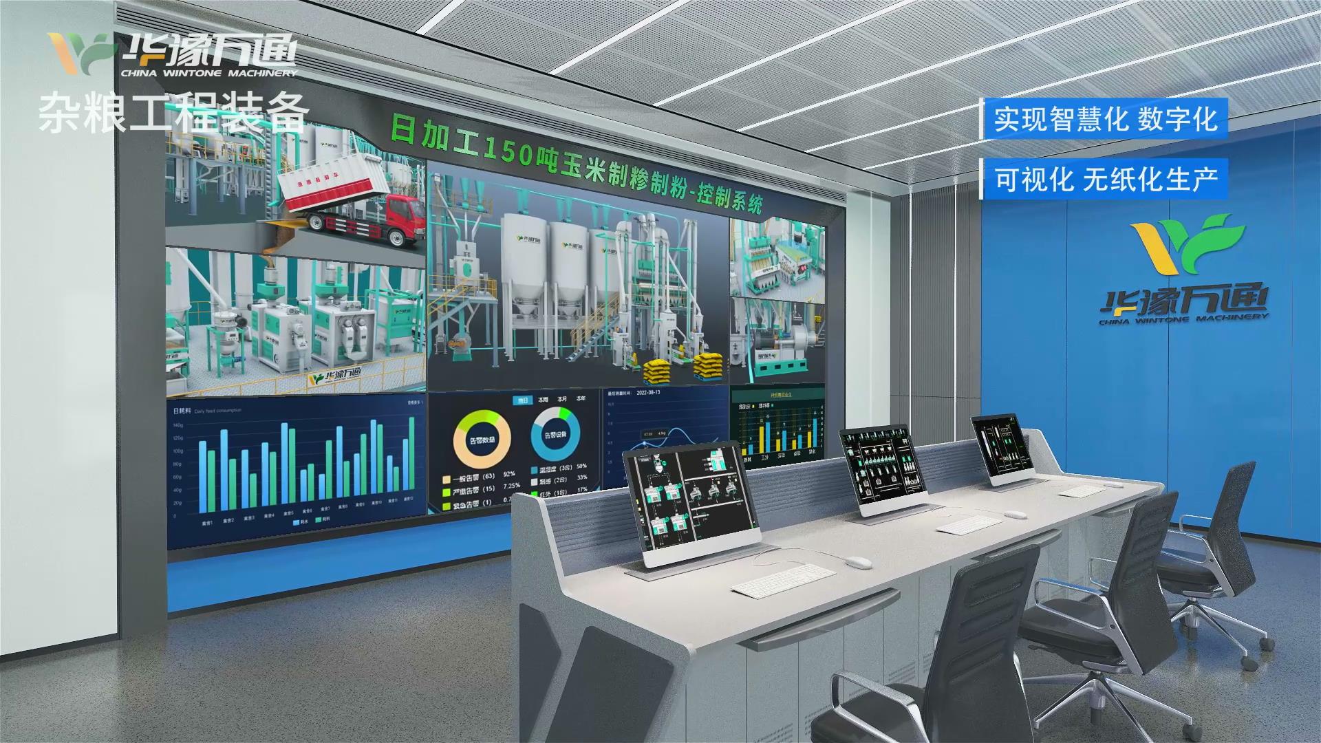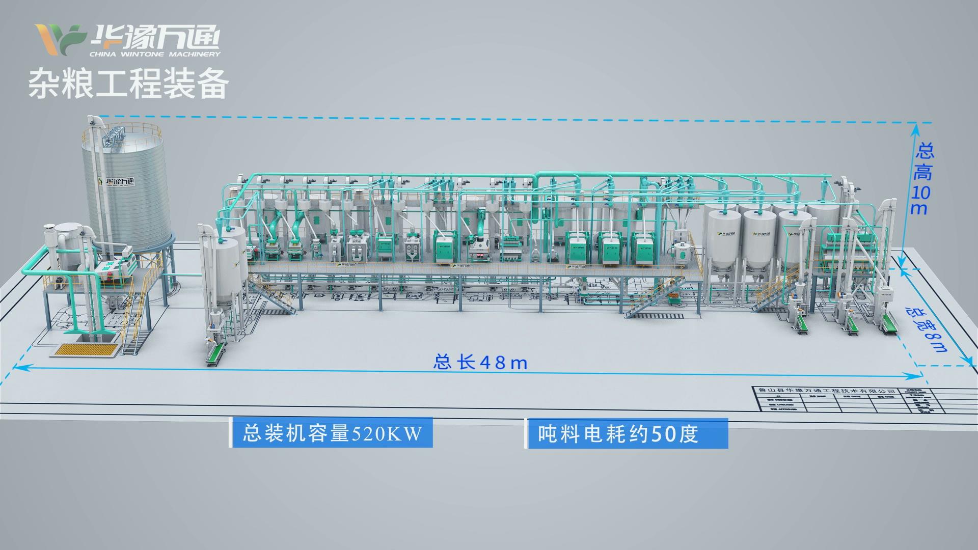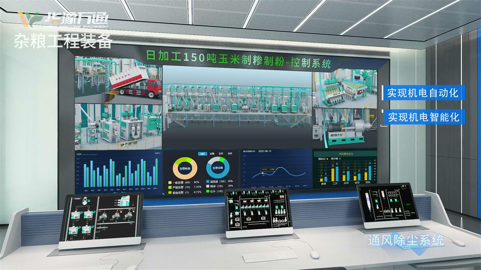 華豫萬通日加工150噸玉米制糝制粉創(chuàng)新工藝,設(shè)計為兩層平臺結(jié)構(gòu),三層設(shè)備布置,總長48m,寬8.0m,高10m,總裝機(jī)容量520kw,噸料電耗約50度,糝粉總收率≥65,糝內(nèi)目測無皮、無黑星,粉內(nèi)無麩皮,遠(yuǎn)超國家標(biāo)準(zhǔn)。配備PLC智能化控制,可實現(xiàn)智慧化,數(shù)字化,可視化,無紙化生產(chǎn)。