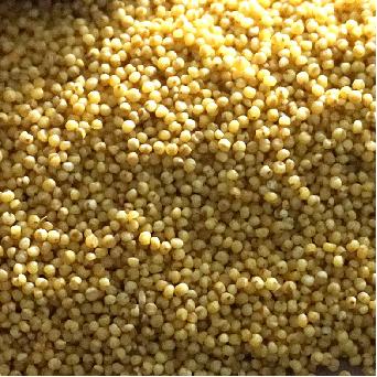 小米(Setaria italica var. germanica (Mill.) Schred. ),又稱為粟,北方稱谷子,谷子脫殼為小米,其粒小,直徑1 mm左右。小米是世界上古老的栽培農(nóng)作物之一,起源于中國黃河流域,是中國古代的主要糧食作物。粟生長耐旱,品種繁多,俗稱“粟有五彩”,有白、紅、黃、黑、橙、紫等各種顏色的小米,也有黏性小米。中國很早的酒也是用小米釀造的!