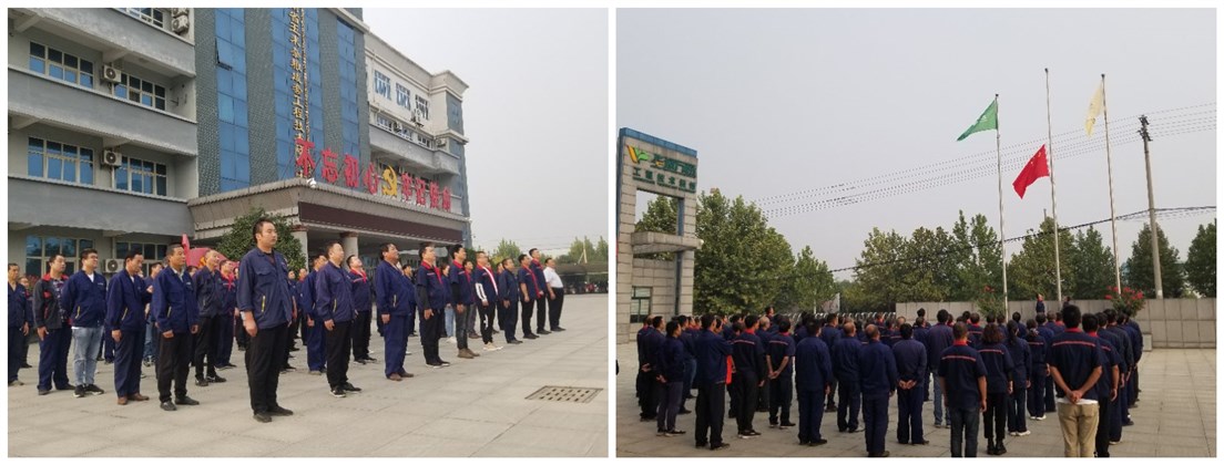 九月三十日早七點三十分,華豫萬通全體員工列隊公司廣場。員工們整齊著裝,氣宇軒昂,七點四十分旗在雄壯的歌聲中冉冉升起,全體員工高唱歌,并行注目禮。