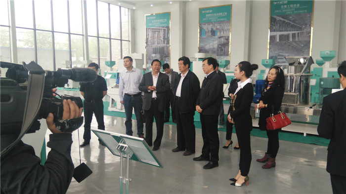 商會(huì)參觀公司設(shè)備展廳,董事長(zhǎng)沈玉現(xiàn)介紹很新智能谷物除霉設(shè)備